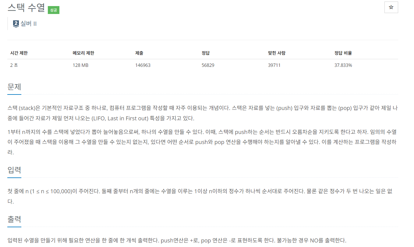 - 어떻게 했을 때 스택으로 수열을 만들 수 없는지 생각하는데 시간이 걸림.